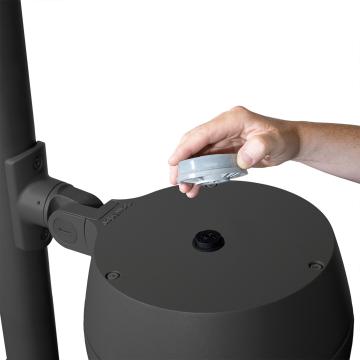 VALINTA SCOPE viene con un sistema exclusivo para facilitar el montaje. La base se fija fácilmente a una superficie o columna. Luego se introduce la pieza macho y se fija girando la luminaria.